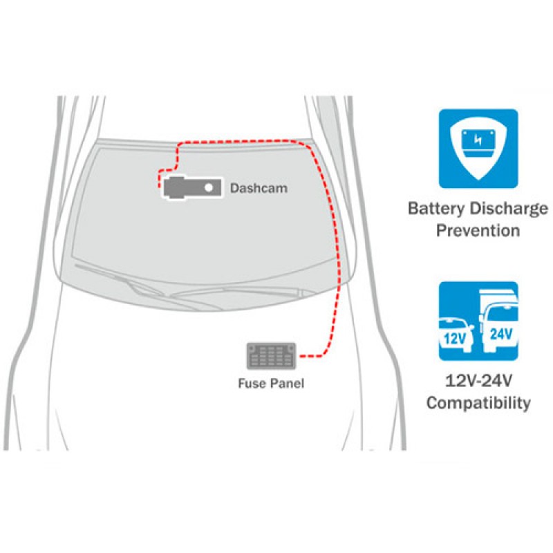 Откажитесь от адаптера питания от розетки прикуривателя! С этим кабелем видеорегистратор Blackvue подключается непосредственно к блоку предохранителей, поэтому он будет всегда оставаться включенным, пока напряжение аккумулятора вашего автомобиля находится выше порога безопасности (например, 12,0 В), который вы указываете в конфигурации видеорегистратора в настройках.