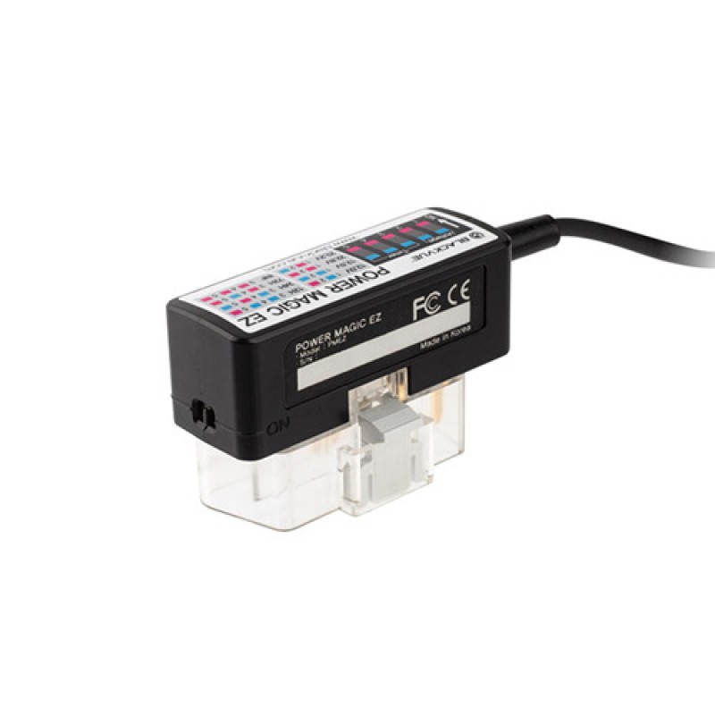Power Magic EZ — специальное устройство для скрытого подключения видеорегистраторов BlackVue к бортовой сети автомобиля через OBD-II разъем. С Power Magic EZ видеорегистраторы BlackVue продолжают запись даже при выключенном зажигании. Устройство предохраняет аккумулятор от разрядки, поэтому вы можете оставить автомобиль под присмотром BlackVue даже на длительный срок. С использованием PowerMagic EZ съёмка прекратится только тогда, когда заряд аккумулятора опустится до нужной отметки либо по выставленному вами таймингу.