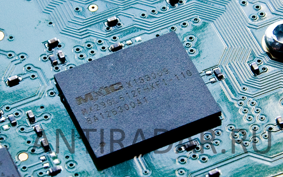 Passport Max - Xeltek MX29GL512FHXF - ППЗУ для контроллера SPARTAN-6. Из этого ППЗУ при включении радар-детектора загружаются патентованная программа обработки сигнала в микроконтроллер. Эта программа может быть улучшена или обновлена пользователем посредством USB-кабеля и соответствующей программы.