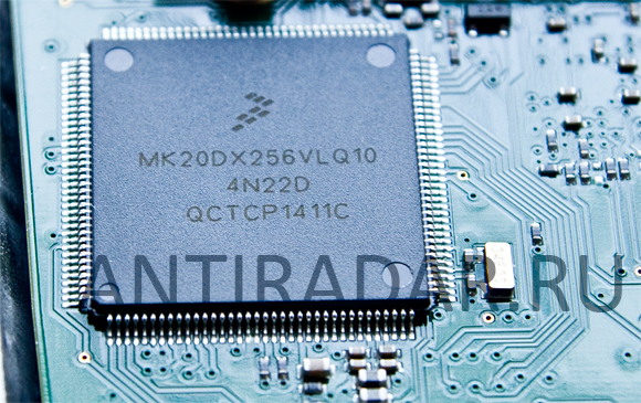 ПЛИС типа FPGA Xilinx SPARTAN-6 ("главный мозг") и АРМ-процессор ("сердце") радар-детектора В радар-детекторе Escort Passport MAX International используется микроконтроллер (ПЛИС) типа FPGA Xilinx SPARTAN-6FPGA (field-programmable gate array - содержат блоки умножения-суммирования, которые широко применяются при обработке сигналов (DSP), а также логические элементы (как правило, на базе таблиц перекодировки — таблиц истинности) и их блоки коммутации. FPGA обычно используются для обработки сигналов, имеют больше логических элементов и более гибкую архитектуру, чем CPLD. FPGA применяются также, как ускорители универсальных процессоров в суперкомпьютерах (например: Cray — XD1, SGI — Проект RASC) ПЛИС SPARTAN-6 полностью отвечает за выделения пиков полезных сигналов с максимальной точностью и скоростью, с преобразованием выделенных пиков по БПФ (Быстрое Преобразование Фурье). Затем полученный результат передается в 32-х битный процессор (серия Kinetis K20,ARM® Cortex™-M4), работающий в частоте 100 МГц и имеющий оперативную память 64 Мб DDR2 для обработки данных. Процессор занимается выдачей сигнала пользователю в удобной форме и прочими периферийными задачи, не связанными с обработкой сигнала. Это разделение работы позволило многократно увеличить разрешающую способность и скорость при обработке сигнала, недостижимую использованием одного унифицированного одного процессора, применяемых в данных устройствах. Интересно: Суммарно это целый! компьютер конца 90-х, умещающийся в 2-х крошечных микросхемах!