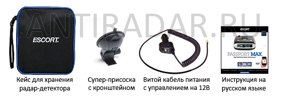 Радар-детектор Escort PASSPORT MAX Intl укомплектован высококачественными и надежными аксессуарами: