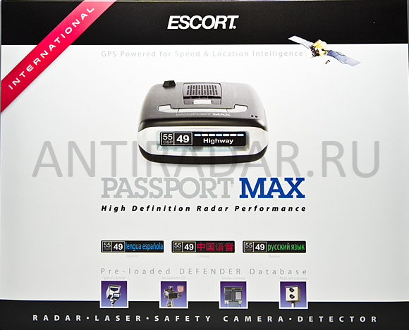 • Защита высшего класса от лазерных измерителей Laser ProtectionEscort Passport Max Intl имеет множественный ИК-сенсор для обеспечения максимальной круговой защиты от лазерных измерителей скорости.