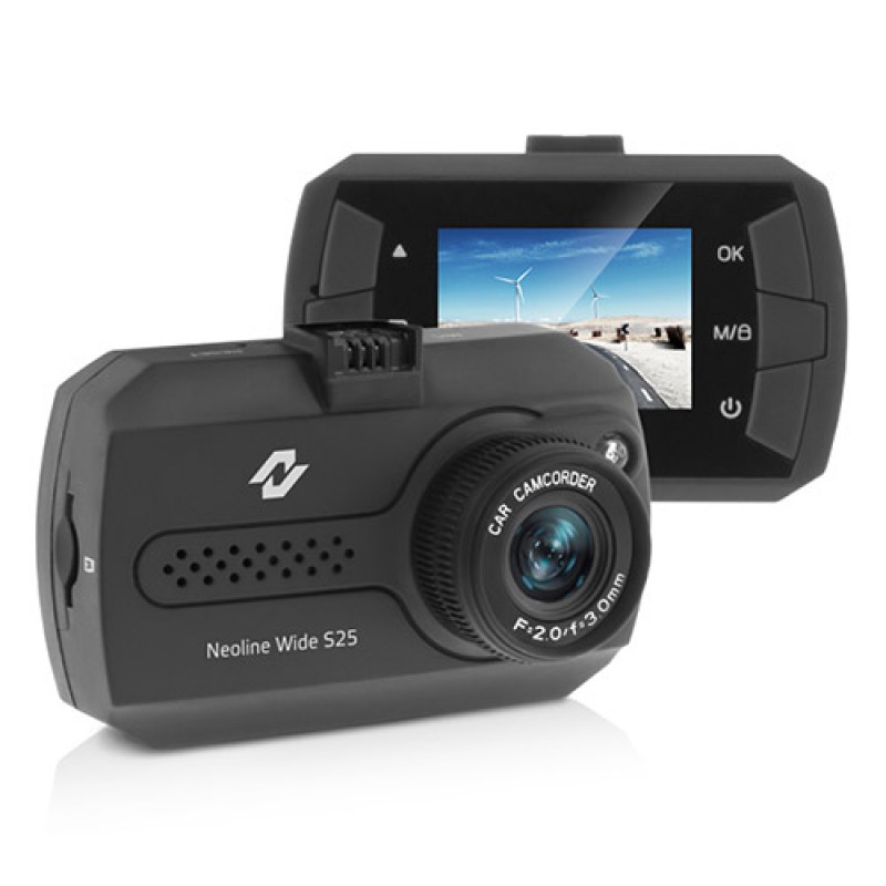 Neoline Wide S25 записывает видео в разрешении Full HD (1920 х 1080 точек 25 к/с) и в HD качестве (1280 х 720 точек, 30 к/с). Этого достаточно, чтобы рассмотреть номера машин и особенности дорожной разметки, а также во всех подробностях восстановить картину дорожного происшествия.