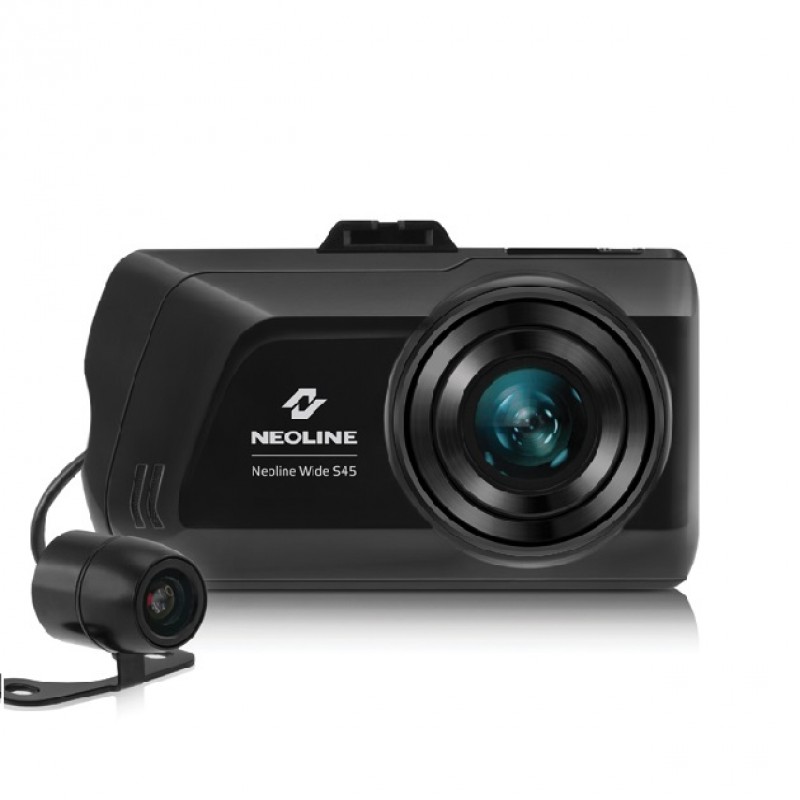 Стильный двухканальный Full HD видеорегистратор NEOLINE Wide S45 c высокодетализированной записью и функцией улучшенной контрастности видео (WDR).