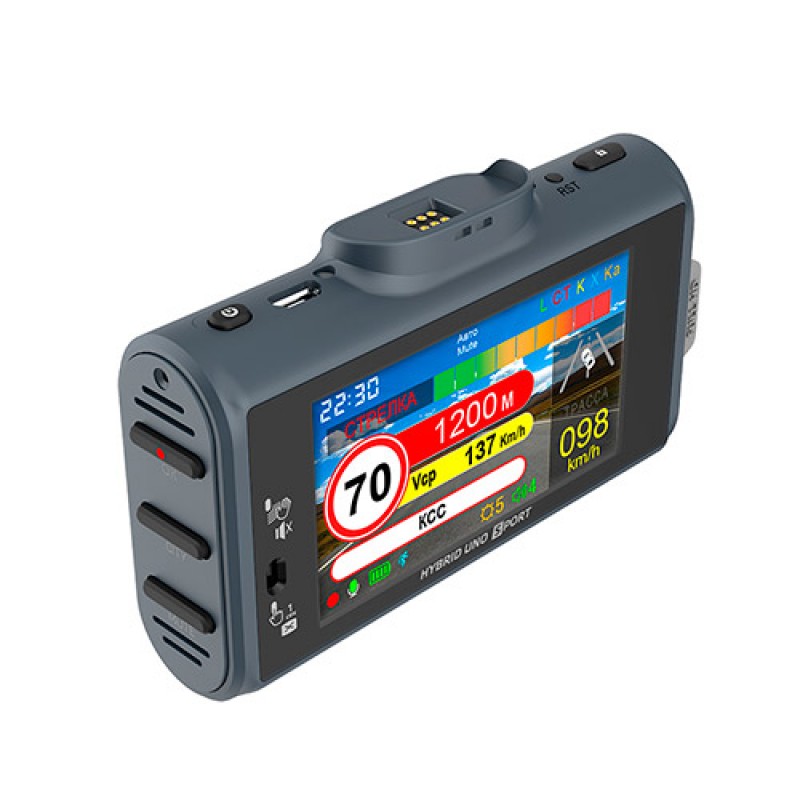 HYBRID UNO SPORT снабжен GPS-сопровождением, алгоритмы которого прошли проверку на всех комбо-устройствах Silverstone F1 и обеспечивают информирование обо всех стационарных комплексах контроля скорости и, как следствие, помогают соблюдать правила дорожного движения и избегать нежелательных расходов. Посмотреть видео с привязкой к карте можно с помощью специальной программы. База данных обновляется еженедельно.