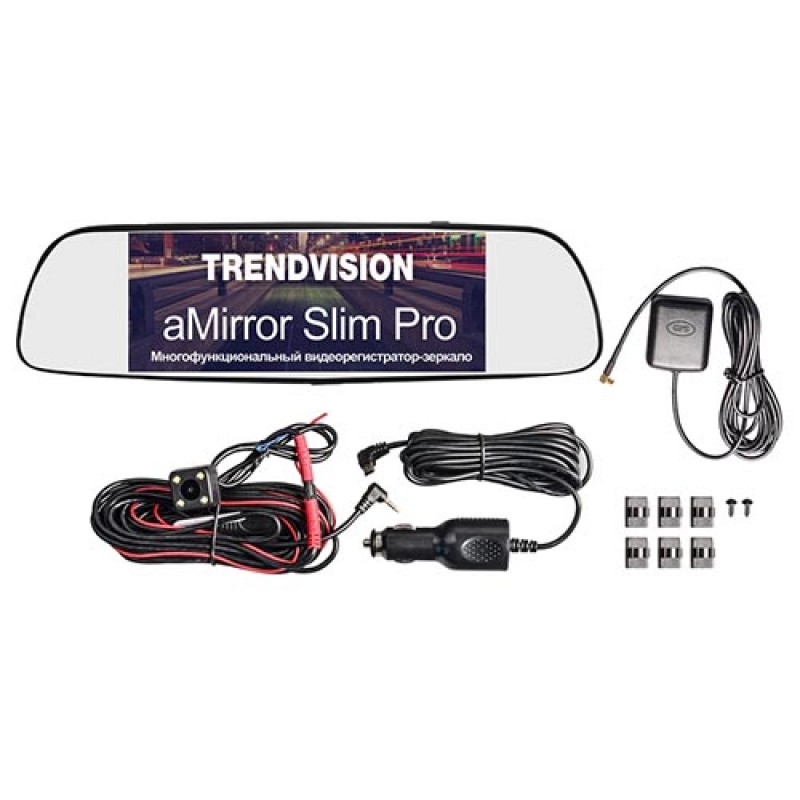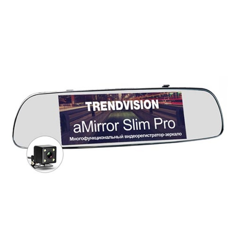 Автомобильный видеорегистратор TrendVision aMirror Slim Pro выполнен в виде накладки на зеркало. Данная модель способна снимать видео в Full HD качестве и получать чёткую картинку в независимости от времени суток или погодных условий. Парковочная выносная камера даёт возможность снимать происходящее позади автомобиля и парковаться без особых усилий.